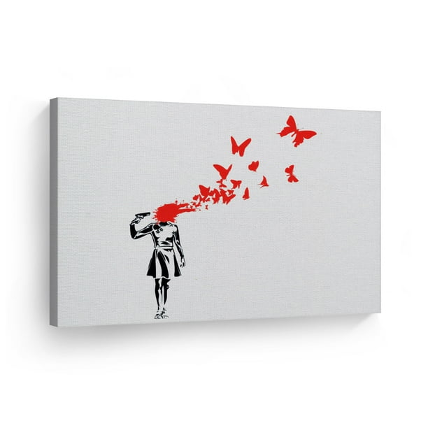 Smile Art Design Banksy Canvas Wall Art Print Butterfly Girl Suicide Red Black And White Street Art Painting Mural Graffiti Modern Artwork Living Room Bedroom Bathroom Decor Ready To Hang 15x22